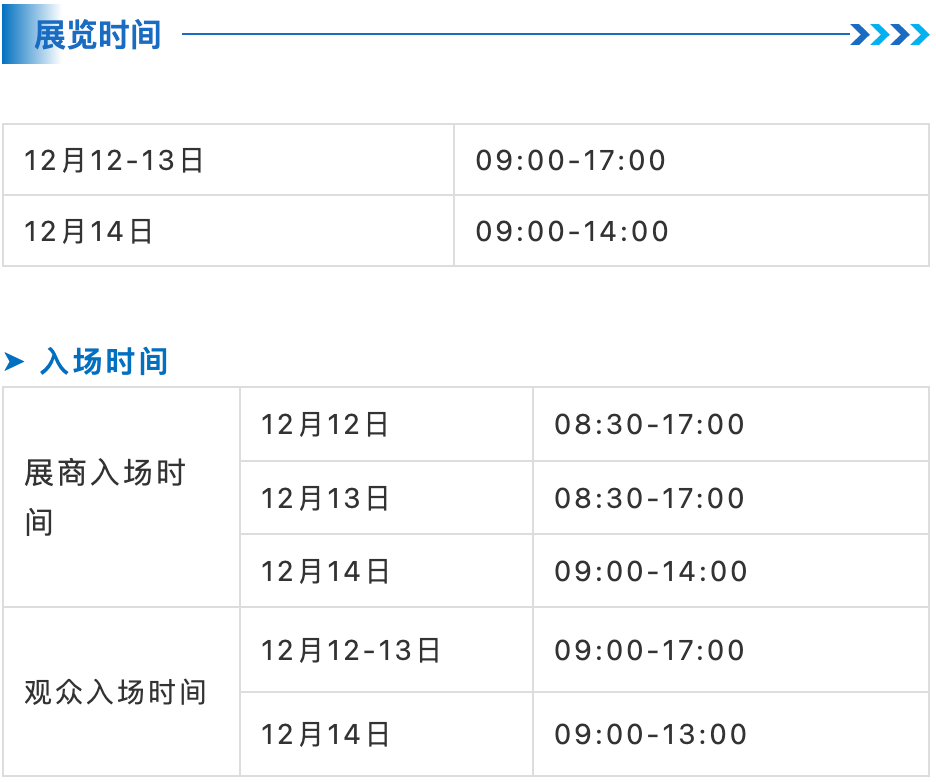 3.12月5日-14日每日7:30-19:30(8日当天延长至24时)。