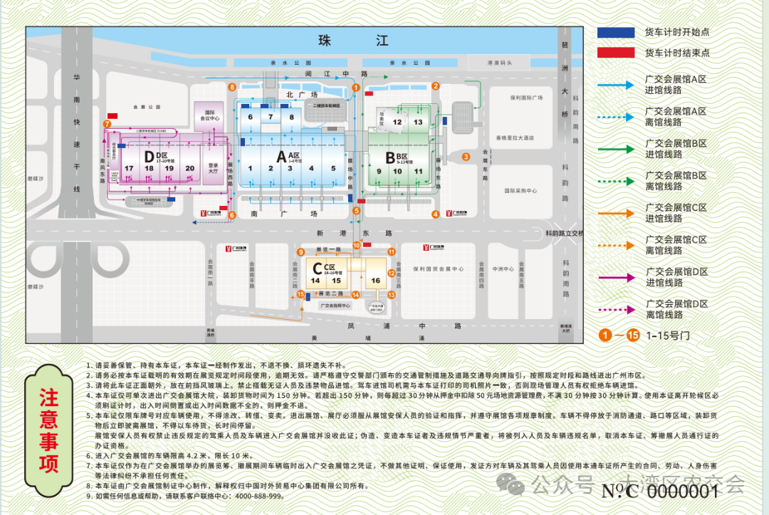 设定导航“广交会展馆-2号门”,车辆从阅江路进入广交会展馆2号门后,右转进入广交会展馆B区北面地面停车场停放,停号车后,直接从一楼南广场10.1号馆门口实名登记进入会场。