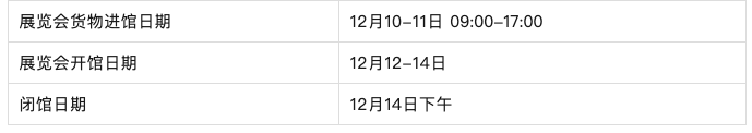 展会期间(2025年12月10日-11日、14日)大会主场承运商在B区11.1南门设现场服务点。